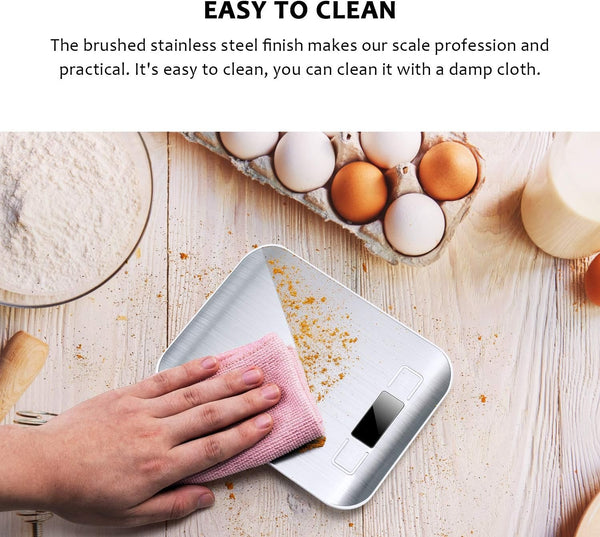 Dotée d'un capteur haute précision, la balance affiche instantanément le poids exact des aliments, avec une marge d'erreur inférieure à 1g. Son écran LCD rétroéclairé assure une lecture facile, même en faible luminosité, et sa fonction tare permet de peser plusieurs ingrédients dans le même récipient sans calcul mental.